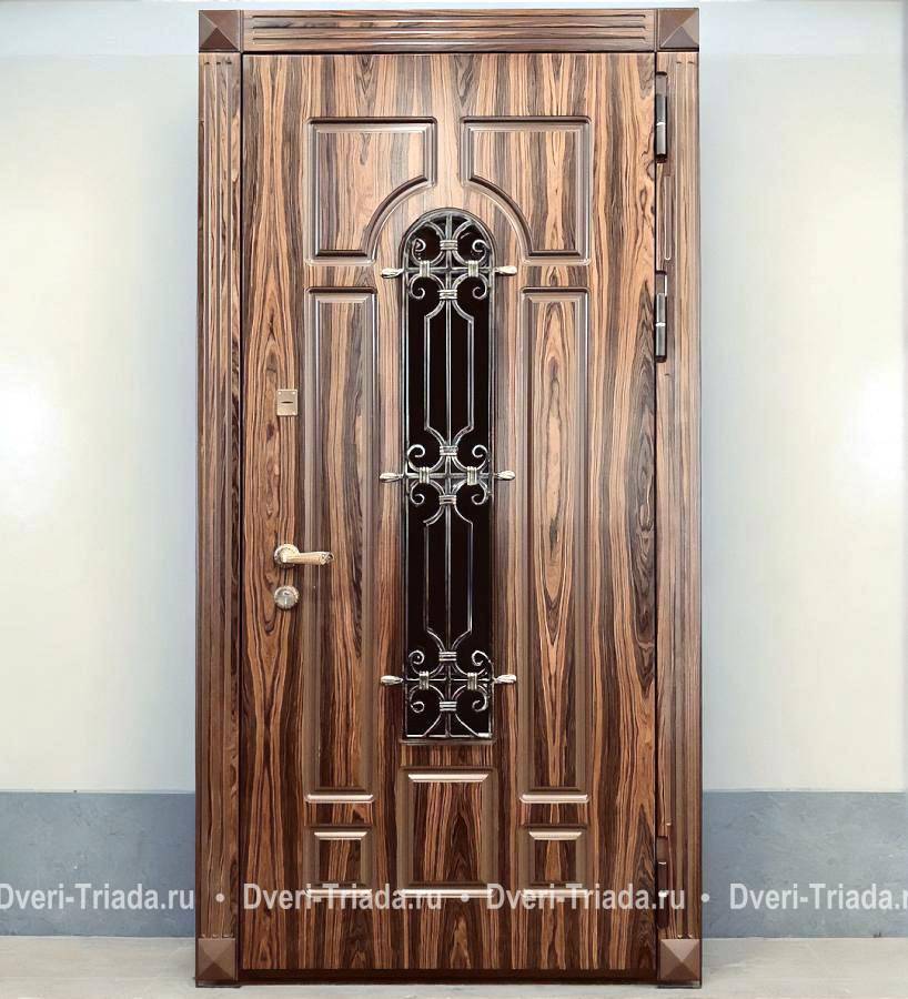 Металлическая остекленная термодверь с решеткой (фрезерованные панели МДФ ПВХ) Арт-636