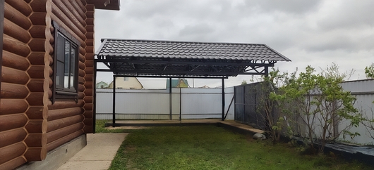 Двускатный навес из металлочерепицы для авто Арт-653